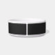 Een moderne dierenvoedselkom op boerderijwijze voor honden of katten is voorzien van "voedsel" in handgeschreven stijl, wit lettering op een zwarte achtergrond met gestreepte accenten.