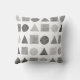 Deze 16 x 16 inch werpt een kussen met handgetekende cirkel, driehoeken en vierkantjes in grijze tinten op een natuurlijke achtergrond.