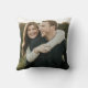Vier je eerste kerst met dit warme, aardse kerstkussen met je verlovingen foto op de rug, een berkenbast achtergrond en eucalyptus groene krans, en gepersonaliseerd met je namen, trouwjaar, en "Onze 1e kerst verloofd" in de hand geletterde typografie. Copyright Elegant Invites, alle rechten voorbehouden.
