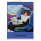 Tuxedo-kat leest het papier op een vlak in een stevige stoel van eerste klasse.