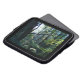 Schitterende witte stralen van de ochtendzon die van achter donkere takken naar een rijk groen zomerbos stromen, met enorme met ionen bedekte bomen en vruchtbare onderpenselen.