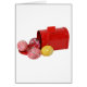 Rode metalen brievenbus met signaalvlag vol met gekleurde marmereieren