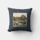 Gooi de kussens met een fotolithograaf van het kasteel van Eglinton in Schotland van 1895 afbeeldingen een gegoten kasteel met een rivier en brug op de voorgrond. Digitaal gereinigd, verbeterd en op ambachtelijke wijze gerenderd om op pen en inkt met waterverven te lijken. Ze zijn omgeven en ondersteund door de Eglinton Montgomery tartan, een traditioneel Schots vlecht-patroon in tinten blauw en rood, met groene en zwarte hooglichten.