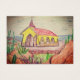 Un crayon d'aquarelle et la peinture de la chapelle Alto Vista à Aruba avec la mer des Caraïbes et divers cactus, rochers et arbustes épineux.