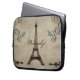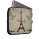 Bescherm uw laptop onderweg met dit aantrekkelijke sleeve dat is voorzien van een grote achtergrondverlichting met de Eiffel-toren, zwengels en vlinders in het blauwgroen. Met tekst kunt u lettertypen wijzigen, tekstkleuren en -grootten wijzigen zoals u wilt. Personaliseer je voor jezelf of maak een geweldig cadeau.