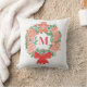 Dit is het seizoen om te versieren! Voeg dit charmante kussen toe aan uw feestelijke inrichting. Het is versierd met een waterverf kerstkrans van kerstkoekjes en seizoensgebonden gebladerte. U kunt het aanpassen met uw initiaal. Originele Waterverf © Michele Davies.