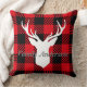 De tekst van de familie van de douane is schattige trendy tartan red en zwart met rendiertjes gooien kussens voor kersttijd.