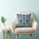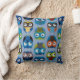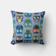 Gooi de kussens met uil op blauwe achtergrond aan de ene kant en massief blauw aan de andere.