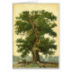 Een blanco kunstkaart met kunst van een gigantische, torenhoge eikenboom op een faux parchment background, aan alle zijden.