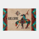 Pas dit unieke "één van een soort" eind van de spoordeur aan! Het is voorzien van een Zuidwest-Amerikaans uiteinde van de Trail Indian and Horse under the Sun op een Tan-achtergrond... omringd door een zuidwestgrens in Turquoise, Oranje en zwart! Dit is een origineel kunstontwerp van artiest Kerry Miller.