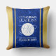 Viel afstuderen op met deze herdenkingskussen, die op een koninklijke blauwe marmer en gouden folie-achtergrond de tongverslapping 'Congradules' op de tongdeklaag in de wang brengen. Personaliseer de namen van de afgestudeerden, het initiaal (of de logo/naam van de onderwijsinstelling) en het afstudeerjaar. Shows omkeren, identiek ontwerp. Ontwerp © W.H. Sim. Zie meer op zazzle.com/expressionsoccasions