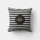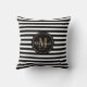 Elegant Awning Stripes Black White Name Monogram Kussen