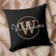 Klassieke zwarte en gouden monogram gooien kussen. U kunt de naam, het monogram personaliseren en de doopvont en de kleuren aanpassen aan creëer uw eigen uniek ontwerp. Ontworpen door: Thisnotme©