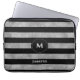 Elegant Black Silver Glitter Striped Monogram Laptop Sleeve
