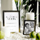 A refined black and white wedding memorial sign designed with classic serif typography and gentle calligraphy for a timeless, heartfelt look.