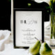 This elegant black and white wedding bar menu combines classic serif typography with refined calligraphy details for a modern yet timeless aesthetic.