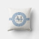 Elegant Blauw Grieks Sleutel Monogram Kussen