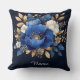 Een levendige digitale illustratie met een boeket van blauwe en witte bloemen met gouden details, geplaatst tegen een donkere contrasterende achtergrond, die een gevoel van luxe en artistieke sophisticatie oproept.