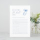 Add a fun yet elegant twist to your bridal shower with the "Elegant Blue Bow Who Knows The Bride Best" game. Featuring a soft blue bow design paired with graceful typography, this game is a stylish way to engage your guests and celebrate the bride-to-be. The game asks fun, personal questions about the bride, allowing guests to show how well they know her. Perfect for a chic bridal shower, this game adds a lighthearted element to the event while keeping the atmosphere sophisticated and fun. It’s a great way to create lasting memories while celebrating the bride!