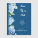 Kondig uw speciale dag in stijl aan met deze prachtig ontworpen "Save the Date" trouwkaart. Met delicate blauwe hortensia bloemen en een elegant script op een zachte blauwe achtergrond, zet deze uitnodiging een romantische toon voor uw bruiloft in oktober. De kaart belicht de trouwdatum (zondag de 12e) en de tijd (18:00), waardoor het zowel in het oog springend als informatief is. Perfect voor koppels die op zoek zijn naar een mix van schoonheid en eenvoud in hun huwelijksbriefpapier.