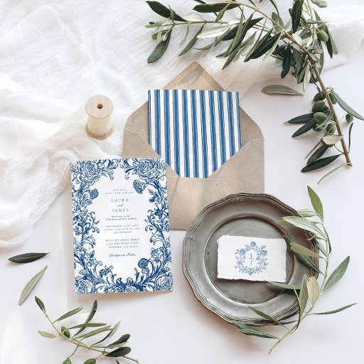 Elegant Blue Floral Crest Wedding striped suiteConçu par Stacy Speakman-Cooke