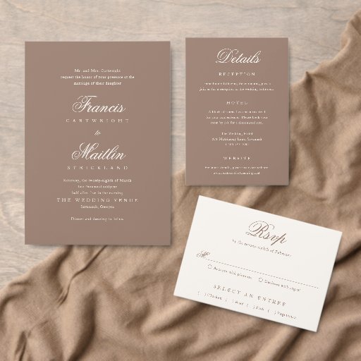 Elegant Brown Romantic Wedding Invitation SuiteOntworpen door Cynthia