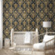 Elegant damast goud en zwart behang
