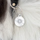 Destei's elegante bruine bruine marmertextuur lijkt op afbeelding samen met een grijze cirkel met een personaliseerbaar monogram initiaal erop. Op de rug zijn er twee verpersoonlijkbare tekstgebieden die voor de naam van het gezelschapsdier en voor het telefoonaantal van de eigenaar worden bedoeld. OPMERKING: HET ONTWERP IS EEN DIGITAAL AFBEELDING EN ZAL OP HET PRODUCT WORDEN AFGEDRUKT.