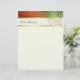 Lang en professioneel uitziend briefhoofd, gemaakt in crème, met grafische weergave van een gradiënt, groen tot oranje gekleurde folie, bovenaan. Een crèmekleurige streep met gouden toonranden zit onder de decoratieve top van de folie. Groene en bruine tekst, op de streep, is klaar om voor zich of uw zaken te personaliseren.