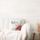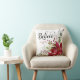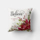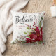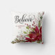 Dit elegante "Believe" kerstkussen is voorzien van een prachtig rood bloemig ontwerp met het woord "Believe" in moderne typografie script. Personaliseer het met jouw naam en datum.