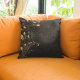 Deze elegante polyester gooit kussen met een bloempatroon in goud, donkergrijs en zwart aan de voorkant, en stevig zwart aan de achterkant.