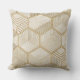 A seamless geometric pattern throw pillow featuring a refined grid of hexagonal shapes outlined in metallic gold. Each hexagon contains intricate designs such as parallel lines, cross-hatching, and abstract geometric motifs. The background blends soft cream and beige tones with a subtle marble-like texture, creating a sophisticated, luxurious aesthetic.