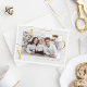 Vier het seizoen met deze luxueuze "Joy"-kerstkaart, met een stijlvol ontwerp van een faux-gouden folie typografie en elegante wervelingen die een gekoesterde familiefoto omlijsten in een zacht, wit en ivoren palet. De verfijnde lay-out benadrukt het woord "JOY" in sierlijke, vloeiende letters, waardoor het een prachtig middelpunt is voor uw vakantie-groeten. Onderdeel van een samenhangend vakantie-collectie, dit ontwerp is ook beschikbaar op bijpassende cadeau-labels, enveloppen en meer, zodat u een gecoördineerde en gepolijste look kunt creëer voor al uw vakantie-correspondentie. Perfect voor het delen van feestelijke warmte en elegantie met vrienden en familie.