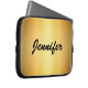 Elegant Gold Metallic Modern Script Personalized Laptop Sleeve