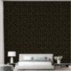 Elegant behang voor moderne ruimtes met een gouden art deco patroon op een zwarte achtergrond.