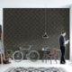 Dit kunstwerk is voorzien van luxe gouden slagen, Japans bamboe blad exotisch tropisch blad over een donkergrijze achtergrond. Het is geweldig voor alledaagse draag huisdecoratie, met een moderne, serene en zomerse tropische sfeer.