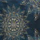 Een trendy geel faux gouden tribal mandala henna artwork met tinten van middernachtblauw en paarse, een kleurmix met verloop, en glanzende sterren. Perfect voor elke dag draag of home decor.