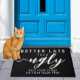 Groet uw gasten met humor en stijl met behulp van deze Funny Welcome Doormat. Met een modern wit handschrift lettertype op een elegante zwarte achtergrond, voegt het speelse bericht "Better Late Than Ugly" een leuke draai toe aan elke ingang. Met deze aanpasbare deurmat kunt u deze personaliseren met uw eigen tekst, zoals uw adres of elk bericht dat u wilt weergeven. Perfect voor het toevoegen van een unieke, gastvrije touch aan uw interieur terwijl het creëren van een vriendelijke sfeer. Een praktische en stijlvolle manier om bezoekers te begroeten, deze gepersonaliseerde welkomstmat is een ideaal geschenk voor housewarmings of elke gelegenheid.