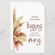 Elegant hoeveel kussen spel teken. Geniet van je vrijgezellenfeest of vrijgezellenfeest met deze aanpasbare spelkaart! Waterverf tropisch boeket met droge pampa's. HOE TE SPELEN - Voor het feest, tel het aantal kussen en noteer het nummer op een stuk papier. -Toon dit gratis "Hoeveel kussen voor de bruid" teken met de regels van het spel en een grote pot of container met Hershey's Kisses. -Instrueer gasten om hun gissingen op te schrijven van hoeveel Kusjes er in de pot op het vel papier zitten. -De gast die het dichtst bij het nummer gist zonder over te gaan, wint de pot met kussen als prijs.