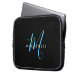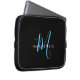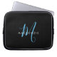 Elegant modern Black Sky Blue Script Monogram Laptop Sleeve