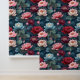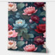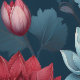Elegant humeurig modern lotusbloemenpatroon met donkerblauw, donkerwijnrood en roos rood, roze en wit, en licht en donkergroen blauwgroen juweeltinten in een maximalistisch stijlontwerp.