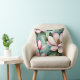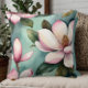 Élégant oreiller fleuri rose et vert