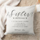 Stuur een mooi gepersonaliseerd cadeau naar je zus dat ze zal koesteren. De kussen zijn ontworpen als een woordenboekdefinitie met "zuster" die is ontworpen in een mooie handgeschreven scriptstijl. Pas de definitie/boodschap van je eigen zus aan samen met de namen van de familieleden. Het is een geweldig cadeau voor verjaardagen, verjaardagen, pensionering en nog veel meer! Design by Moodthology Papery.