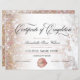 Elegant, trendy Certificate of Completion-onderscheidingscursus met marmer en glitter roos gold background en handgeschreven kalligrafiescript ''certificate of voltooiings''. Personaliseer met cursusdetails en een naam.