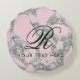 Elegant roze marmer-monogram rond kussen. Kustkussen voor thuisgebruik voor bed, sofa, bank, stoel, enz. Grafische decoraties voor nieuw huis, slaapkamer, trouwplaats, kantoor, kamer van kind, kleuterkamer en nog veel meer. Prachtig ontwerp met aanpasbare achtergrondkleur. Luxueuze accessoires met stijlvolle typografische sjabloon.