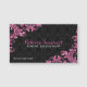 Elegant roze metalen bloemenkant wervelt over zwart bloemendamast patroon, visitekaartjes magneet sjabloon. Voor eventontwerpers, huwelijksplanners