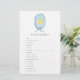 Dit woord scramble Baby shower spel beschikt over een handgetekende geel rubber eend omlijst in een zacht blauw lint gebonden in een boog aan de onderkant. SLEUTEL: 1. BIB 2. ROLSTOEL 3. BASSINET 4. ONE-SIE 5. WIEG 6. FLES 7. MOBIEL 8. TEDDYBEER 9. KINDERRIJM 10. BABY-MONITOR 11. SAMENVOEGEN 12. FOPSPEEN 13. SPEEL PEN 14. LULLABYE 15. LUIERZAK
