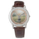 Perfect cadeautje voor grootouders! Dit supermoderne horloge kenmerkt een favoriete foto samen met uw gepersonaliseerde naam op een middelgrote bruine het paneelachtergrond van hout.