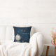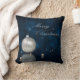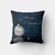 Een elegante kerstillustratie: een zilveren kerstbal en witte parels op een donkerblauwe achtergrond.