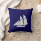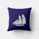Elegant wit jacht op Navy Blue Kussen